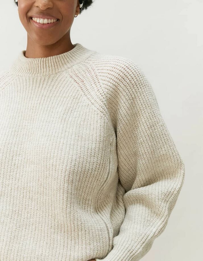Trui heeft een ‘V’ model: valt ruim aan de bovenkant (bovenarmen & oksels) en vanaf de taille licht getailleerd. De onderkant heeft een elastiek effect waardoor je het dubbel kunt vouwen. De ritsen aan beide zijkanten zijn in dezelfde kleur en (bijna!) onzichtbaar (verwerkt in de naad van de wol).
