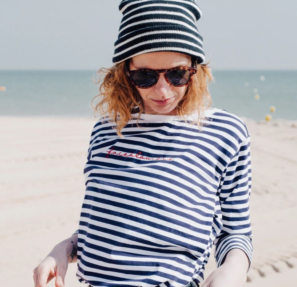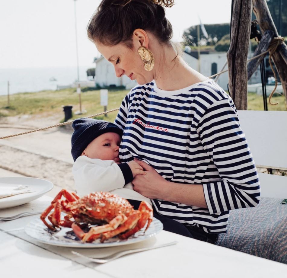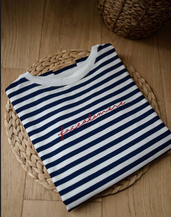 Voor al die keren dat de baby als een mossel aan zijn rots hangt, is er de gestreepte trui met het gezicht naar de moeder toe: een voedingst-shirt met ¾ mouwen, perfect om je uitstapjes op zee, net als op het land, aan te kleden! Een must-have voor je garderobe als moeder! In de loop der jaren is het hét voedingsshirt geworden dat jaar na jaar opnieuw wordt uitgebracht, om je te helpen de golven van het moederschap te trotseren. We kunnen ons al voorstellen dat je opgerold tegen je kleintje aanligt, tenen (en haren) wapperend in de wind… Want het valt niet te ontkennen, het is in het bijzijn van de moeder dat je baby’s zich zo goed voelen.