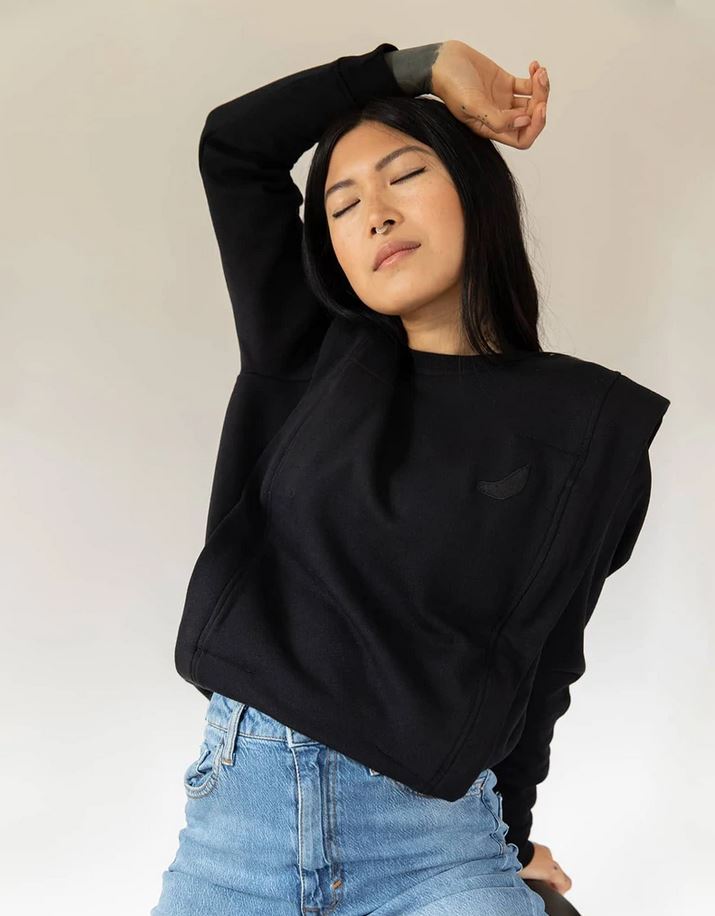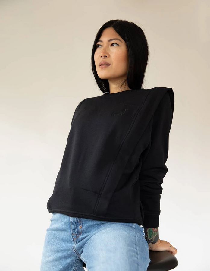Weer een Franse fonetische woordspeling “Hey Paulette” = épaulette. En nu komt de vraag.. wat zijn ‘epauletten’? Letterlijk: schoudertjes. TajineBanane heeft bij deze trui gekozen voor een nieuwe variant om je schouders mooi uit te laten komen 🤩 Mooi horizontaal, stoer en je bent weer klaar voor de dag! Want ja, we weten allemaal wat mama’s schouders 24/7 mogen dragen!