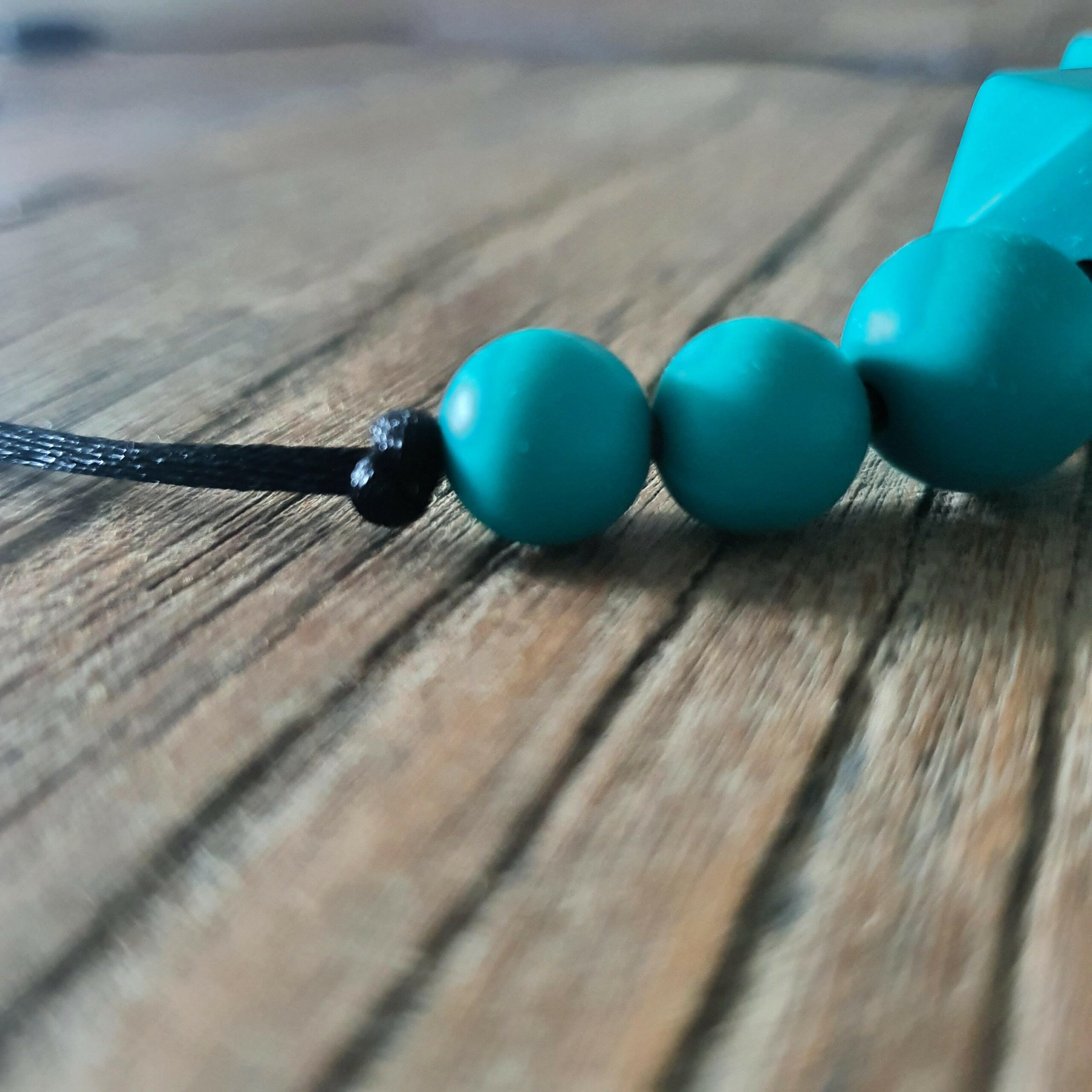 De ketting bevat 100% siliconen kralen en de koord is volledig van satijn met een zwarte kleur.